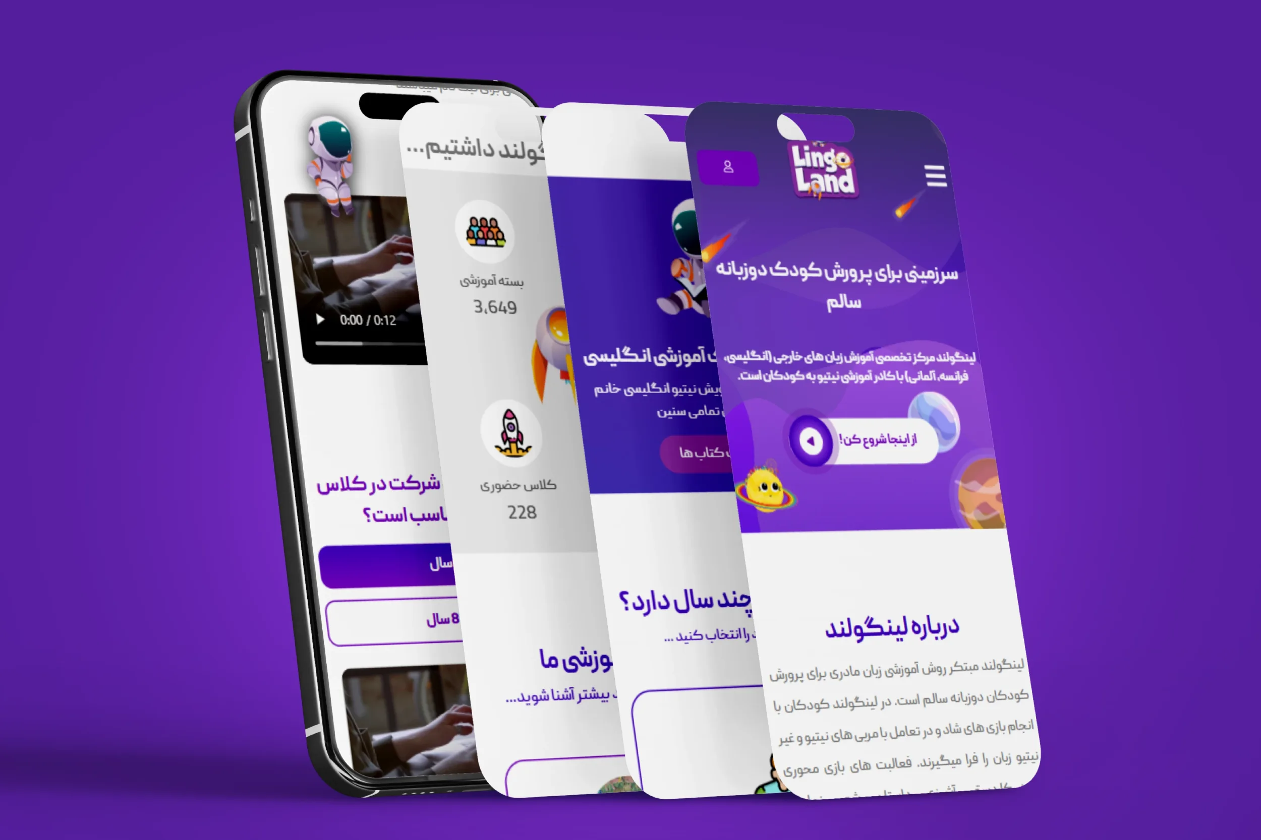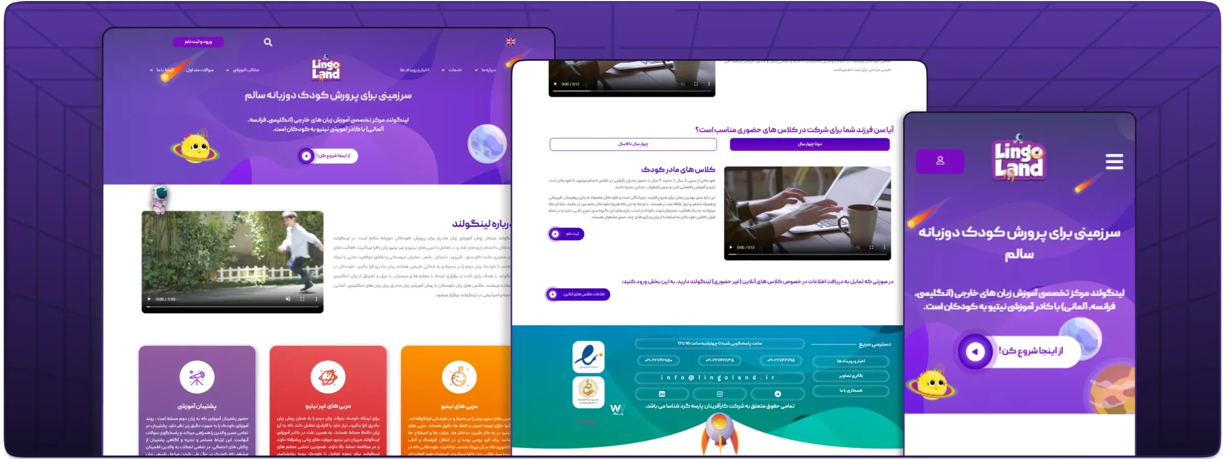 در طراحی وب‌سایت لینگولند، تمرکز اصلی بر ایجاد محیطی کودکانه، شاد و در عین حال کاربردی بود تا هم کودکان جذب فضای سایت شوند و هم والدین بتوانند به راحتی از امکانات آن استفاده کنند. در این پروژه، رابط کاربری با رنگ‌های زنده، آیکون‌های کودکانه و تصاویر کارتونی طراحی شد تا حس بازی و یادگیری را هم‌زمان منتقل کند. طراحی واکنش‌گرا باعث شد تجربه‌ی کاربران در موبایل و تبلت کاملاً روان و بدون مشکل باشد. بخش معرفی مربیان و تیم آموزشی با هدف ایجاد اعتماد بیشتر برای والدین طراحی شد و پروفایل هر مربی همراه با تصویر و تخصص او به نمایش درآمد. همچنین، بخشی برای بازخورد والدین و اشتراک تجربه‌های آن‌ها در سایت قرار گرفت تا کاربران جدید بتوانند دید واقعی‌تری نسبت به کیفیت آموزش‌ها پیدا کنند. در ادامه، بخش «روش آموزشی و فلسفه لینگولند» به توضیح روش زبان مادری و اهمیت آموزش از سنین پایین می‌پردازد و گالری تصاویر و ویدئوها فضایی فراهم می‌کند تا بازدیدکنندگان با محیط آموزشی و سبک کلاس‌ها آشنا شوند. در نهایت، با طراحی فرم تماس و ثبت‌نام آنلاین، والدین می‌توانند به‌سادگی در دوره‌ها ثبت‌نام کرده یا مشاوره دریافت کنند. تمامی این بخش‌ها همراه با بهینه‌سازی دقیق سئو داخلی پیاده‌سازی شدند تا سایت با کلمات کلیدی مرتبطی مانند «آموزش زبان کودکان»، «کلاس زبان آنلاین کودکانه» و «روش زبان مادری» جایگاه مناسبی در نتایج جست‌وجو به دست آورد.